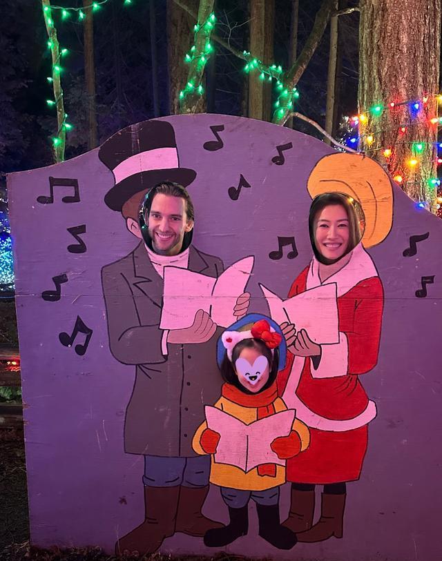 圣诞夜那张全家福,她抱着无毛猫Maple,猫脸被女儿Sara贴上了红点贴纸,像颗卤蛋。