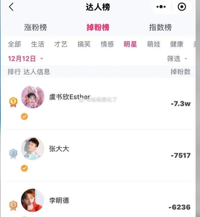 现在剧播期间,她还在不断的掉粉,掉粉日榜上排到了第一名,之前蹲过局子的李明德都没她掉粉掉得多。