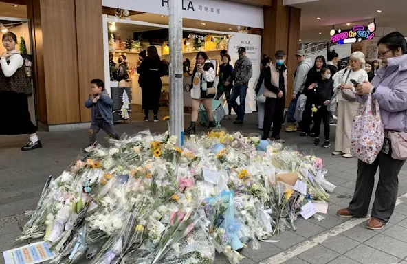 ▲在捷运中山站附近的诚品南西百货店,不少市民献花悼念死者