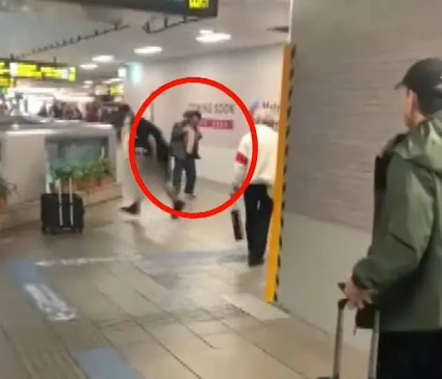▲余家昶(红圈处)挺身而出,直奔嫌疑人张文(图右戴帽男子)身边