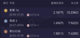 《奇迹》一上线,收视率火速破1.6,飙至全国第2。