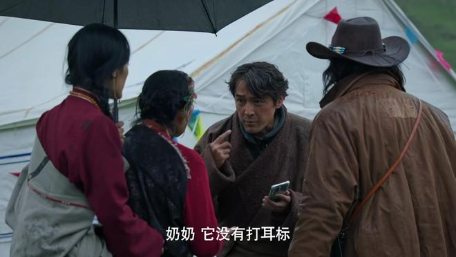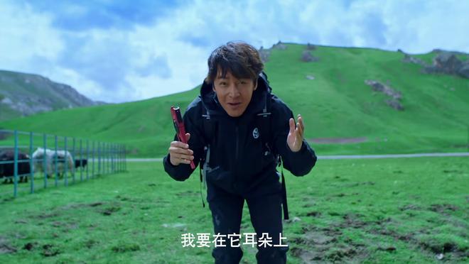 从深圳来西藏推广耗牛保险的张招远(胡歌饰),正要给一头耗牛耳朵上打上耳标。