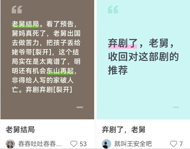 好多观众纷纷表示舅妈死了就弃剧并且打低分。