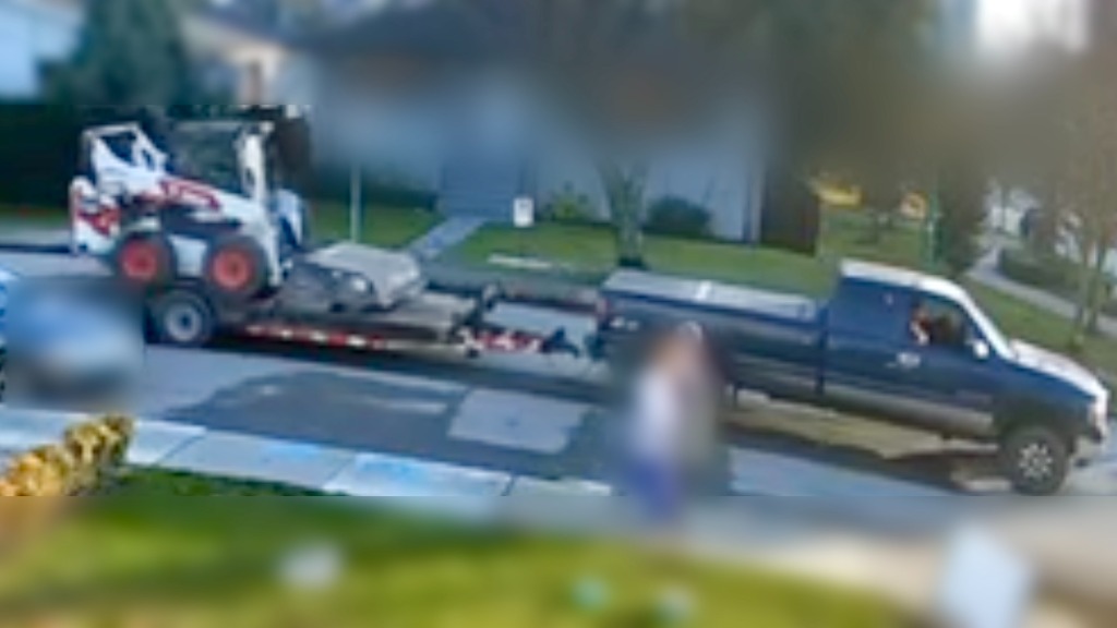 “不久之后,这两辆皮卡车离开该地区,这次车上载着一台价值约10万加元的被盗山猫装载机”。
