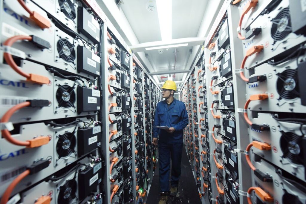 一组磷酸铁锂电池装置的内部,中国在该领域占据着主导地位。 Feature China/Future Publishing, via Getty Images