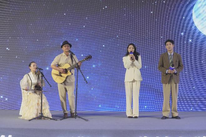 闫佩伦在“去辽阔处——阿勒泰·花城文学周闪亮之夜”与阿丽玛共同表演歌曲《月光》。(图/ 花城出版社)