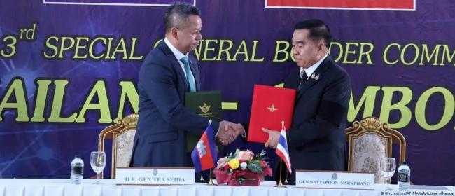 泰国与柬埔寨的国防部长在边境检查站签署了停火协议 图像来源: Uncredited/AP Photo/picture alliance