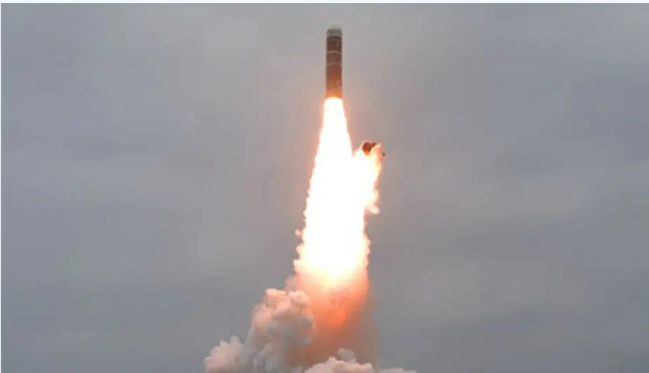 既然是战略核潜艇,那鱼雷只是自卫武器,配备核弹头的潜射弹道导弹才是其“杀手锏”。朝鲜自2015年1月首次进行潜射弹道导弹水下发射试验起,已经研制了多款“北极星”系列潜射弹道导弹。最先出场的是“北极星”-1导弹,该导弹参考了朝鲜从苏联获得的R-27潜射弹道导弹,但采用固体火箭发动机,长约9.5米,直径约1.5米,最大射程约1200千米-1700千米。