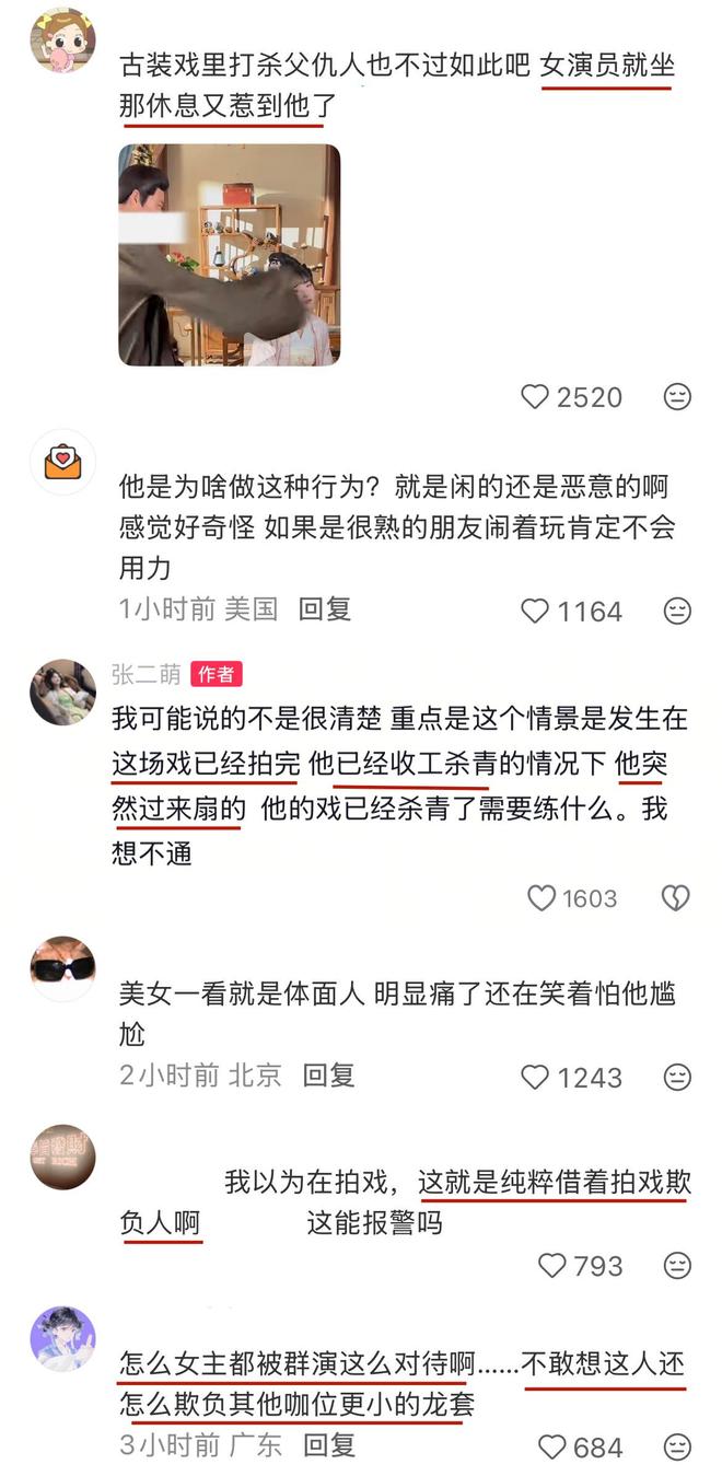 “女演員就坐那休息又惹到他了?”