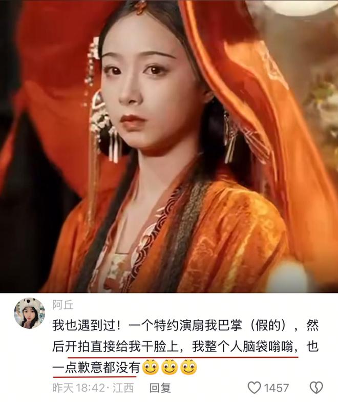 短劇女演員阿丘稱,自己也被同劇演員扇過耳光。