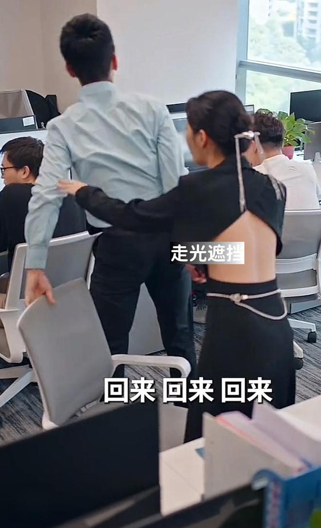 當時,她穿著壹件露背上衣,攝像機從側後方拍攝,她壹抬手側面全部走光了。