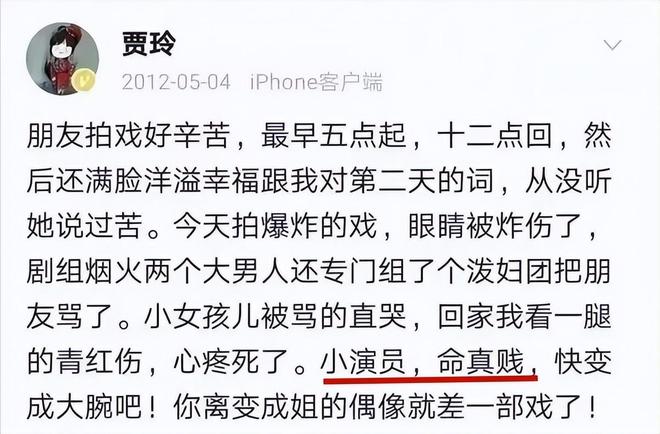 這時候,很多人突然想起,當年賈玲還是個無名小卒時曾說:小演員,命真賤。