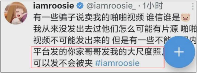 但不知是不是不想爆料了,她又称在外网发也会被追责,一些私密照不会发了,疑似认怂了。