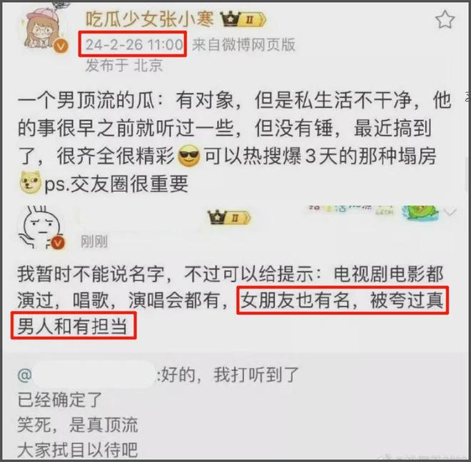 不得不说,司晓迪爆料到现在,不管是粉丝和网友都麻了。两年前也有狗仔爆料手里有男顶流的瓜,称男顶流有对象,但是私生活不干净,还有大V紧跟着爆料称男顶流是多栖艺人,女朋友也有名,被夸过真男人和有担当。