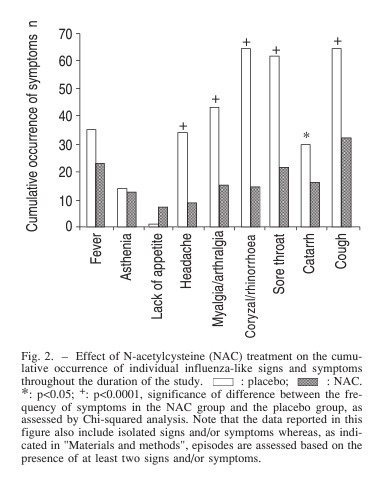 Might consider taking NAC over a winter season as 600 mg twice a day reduced the number of people with symptoms of Flu (not those infected) from 79% to 25% in a Multicenter, Randomized Double-blinded Placebo Controlled trial: https://t.co/I42mZESBnJ pic.twitter.com/GctzAyUR1q— Roger Seheult, MD (@RogerSeheult) January 16, 2025