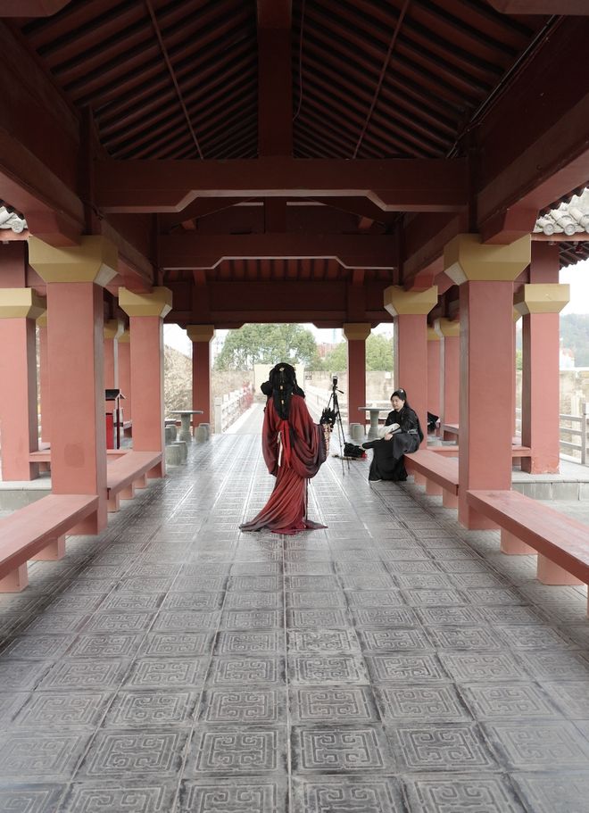 横店景区内,拍摄段子的演员图源:时代周报记者 傅一波