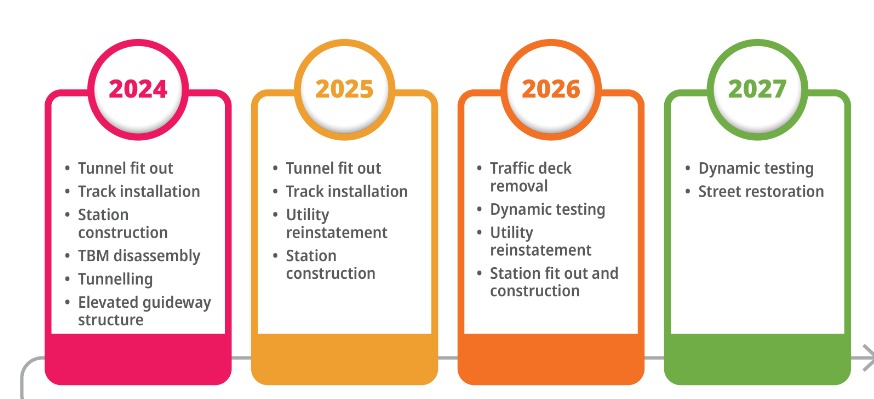 千禧线百老汇延伸段工程自2021年春季开工,预计将于2027年秋季完工并正式通车。