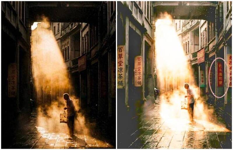 而该大赛冠军由一名为“骑楼阳光”的作品拿下,画面上可以看到一名拎着鸟笼的老人站在骑楼巷道内回首,一道阳光穿过建筑物洒落在老人身上。 据悉,原PO将该作品的曝光度调到最高,马上发现怪异之处,巷道两侧店铺招牌清晰可见,但眼尖发现画面右边一块招牌字体错乱,乃AI生成图常出现的状况,且老人提鸟笼的手指与手掌也连不起来。