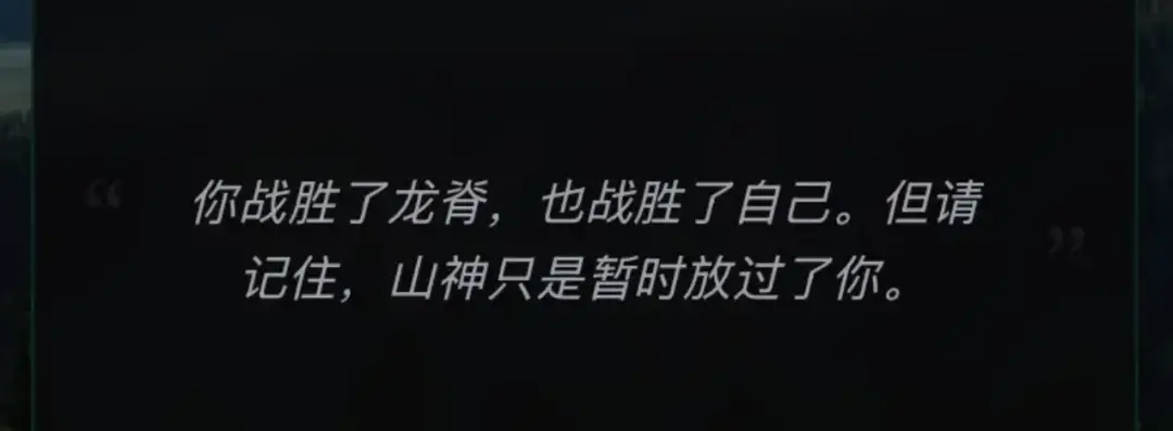 “你战胜了龙脊,也战胜了自己。但请记住,山神只是暂时放过了你。”