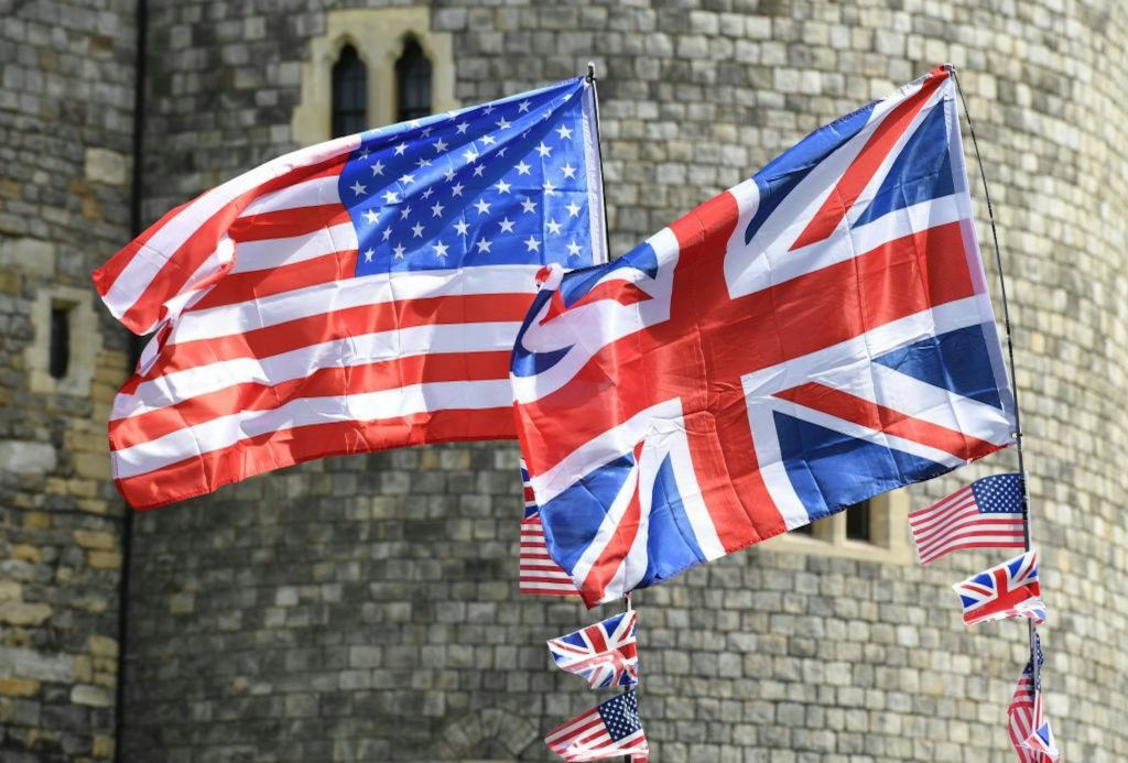 2018年5月18日,英国温莎堡(Windsor Castle)前飘扬着英国国旗和美国国旗。(Getty)