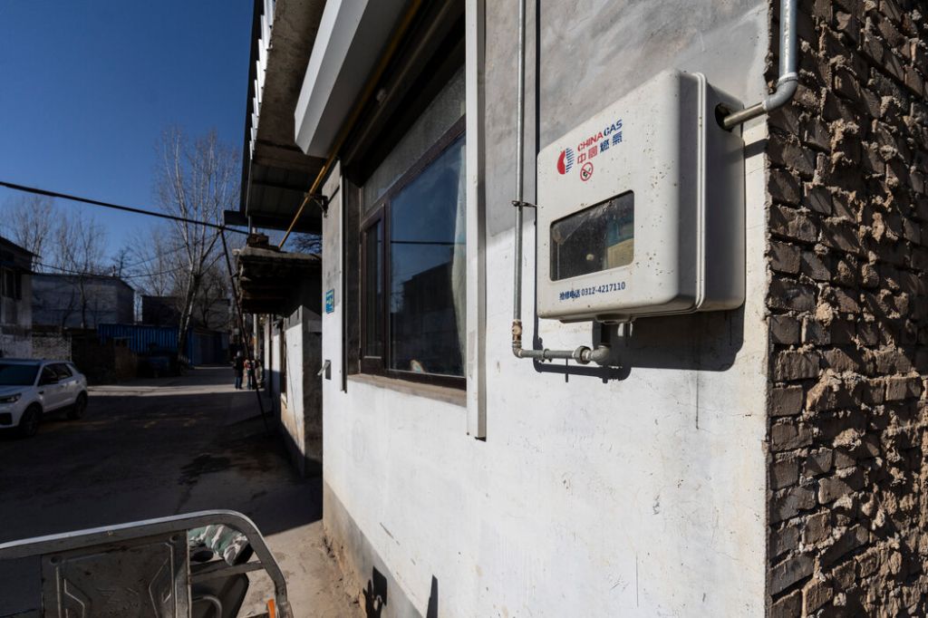 村里的一个天然气表。由于燃气取暖费用高,一些居民即使在极度寒冷的天气里也不舍不得开暖气。 QILAI SHEN FOR THE NEW YORK TIMES