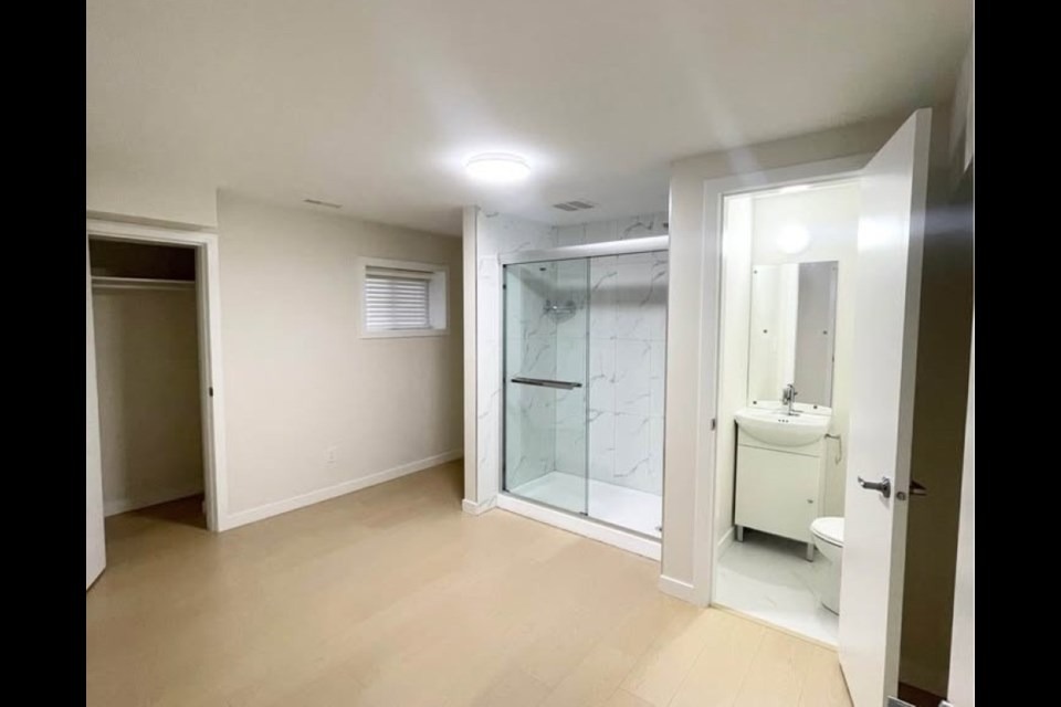 這套位於獨立屋的地下套間對“帶獨立衛浴”的定義不同尋常--淋浴間直接設在臥室裡。