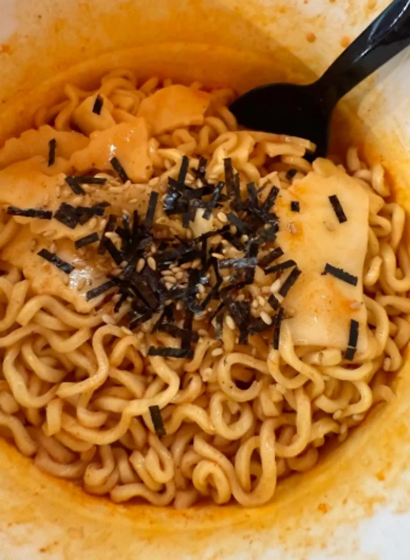 安吉只好大口吃起了火鸡面来解馋。既然吃不到爸爸沙溢老家吉林长春的面食,吃一点火鸡面也算是解馋了。