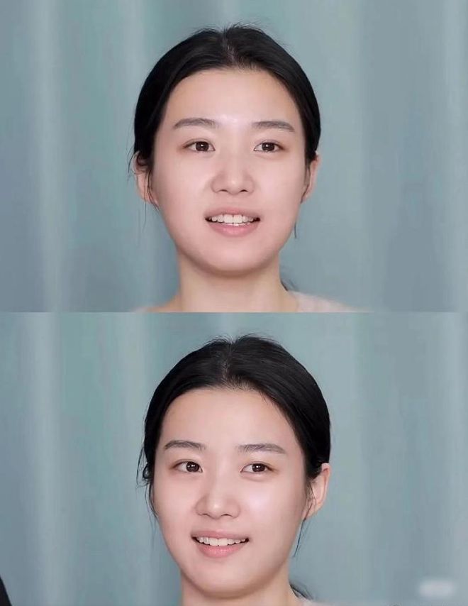 而模糊感則來自盧昱曉的面部留白多、折疊度很低,原生臉是比較扁平,是典型的闊面型淡顏系美女。