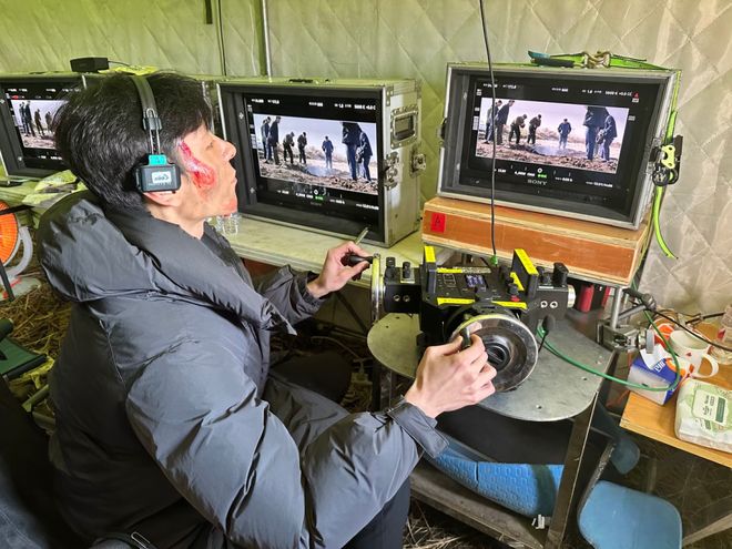 蔣奇明在《飛行家》拍攝片場