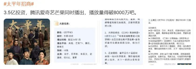 网传耗资3.5亿的大项目,果然央视也给出了跨年大戏最高档的排面。