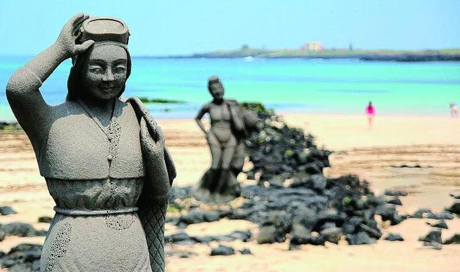 下古水洞海滩上的海女雕像。