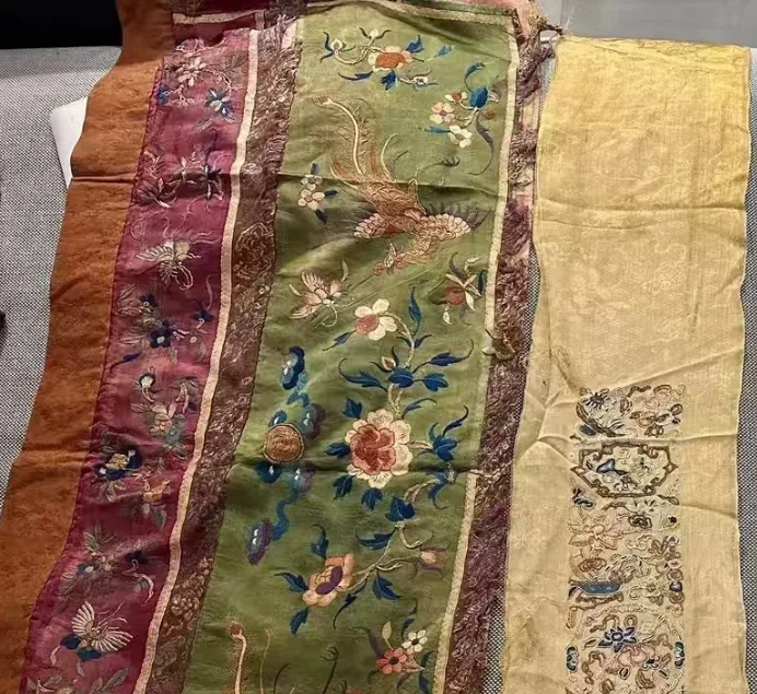 一块绣片周围的线头杂乱无章,像是从成衣上撕扯下来的: