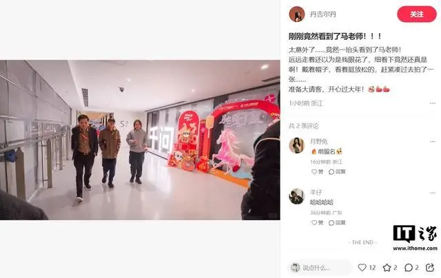 IT之家 2 月 4 日消息,有网友今日(2 月 4 日)在社交媒体发文,阿里巴巴创始人马云现身位于杭州阿里总部的千问春节项目组。