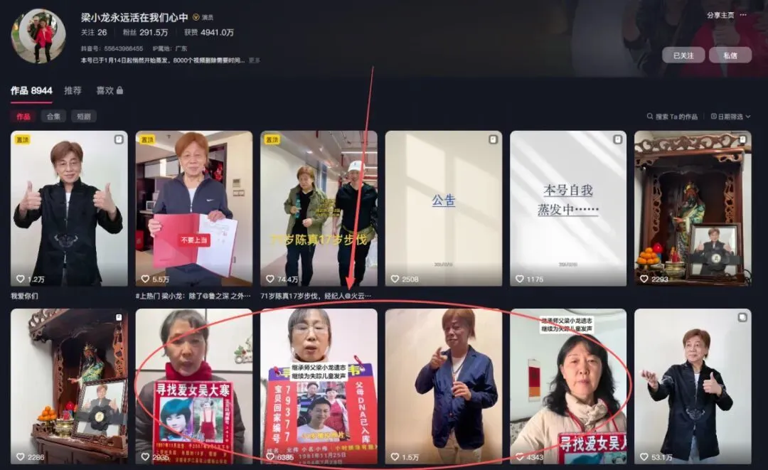 平头称,因253万元肖像权官司周期较长,他本想着在必要时,可利用账号发表声明,后续也可用作公益,为失联儿童发声等,并非恶意霸占账号。记者注意到,该账号在梁小龙去世后发布了4则公益视频,其中包含梁小龙生前为失踪儿童发声内容。