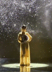 娜扎穿着金色高开叉长裙,肌肤雪白、锁骨都是高光,一整个金光闪闪。
