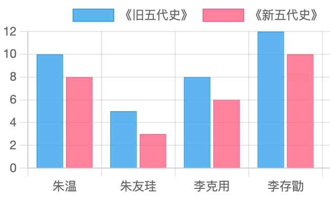 圖說:識典古籍的深度研究助手繪制,後梁核心人物在古籍中出現頻率柱狀圖