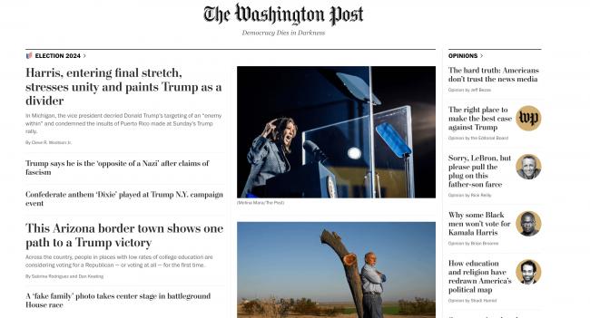 如今,贝索斯似乎学乖了。2024 年 10 月,美国总统大选前 11 天,贝索斯挡撤回了《华邮》计划支持民主党候选人贺锦丽(Kamala Harris)的背书,导致至少 25 万份《华邮》订阅被取消。不久后,贝索斯对报纸的评论版施加了新的限制:别谈政治了,我们来聊聊“个人自由”和“自由市场”。这导致评论版主编许普利(David Shipley)离职,许多顶级评论人纷纷求去。