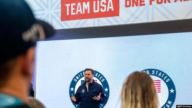 资料照片:2026年2月5日,美国副总统万斯在意大利米兰冬奥会美国队欢迎体验活动上发表讲话。