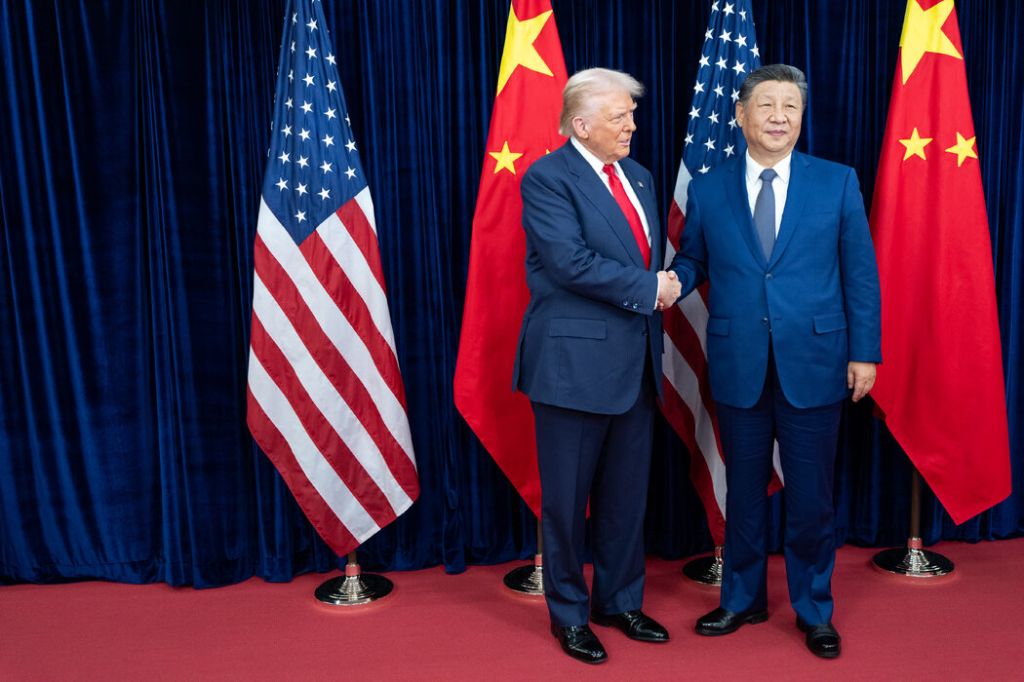 去年10月,特朗普總統在韓國與中國領導人習近平會面。美國官員表示,若中國對台灣實施封鎖,可能會切斷計算機芯片的供應,並使美國科技產業陷入困境。 HAIYUN JIANG/THE NEW YORK TIMES