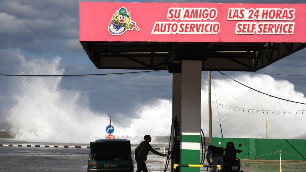 2026年1月27日,人们在古巴哈瓦那马雷贡附近的一个加油站给汽车和摩托车加油。