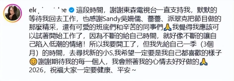 其实早在此前,小S就对自己的复出做了预告,媒体也形容她将在年后复工。
