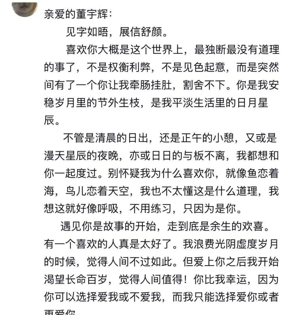 “不是权衡利弊,不是见色起意”,把董宇辉称作她平淡生活里的日月星辰。