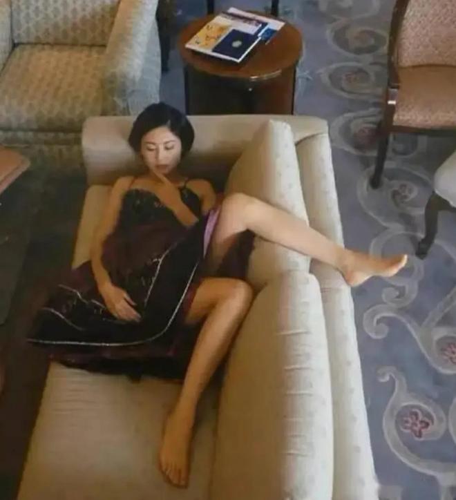 區別熒幕上壹貫的古典婉約,這張照片中的陳紅,頭發攏著枕在沙發邊,腿則隨意搭在靠枕上,閉目慵懶,手指抵在唇邊,構圖像壹幅面,安靜又撩人。