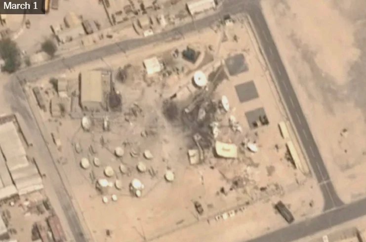 《纽约时报》称,卫星图像显示,位于科威特的美军阿里夫詹营的雷达设施遭破坏