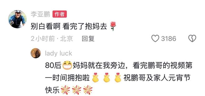 參考資料:人民網 李亞鵬分享陪母親過元宵節日常