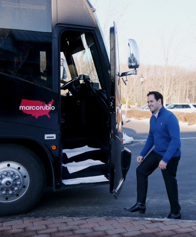 在2016年新罕布什爾州的壹場競選活動上,馬可·盧比奧穿的是他的Florsheim靴子。圖片來源:MARY SCHWALM/ASSOCIATED PRESS