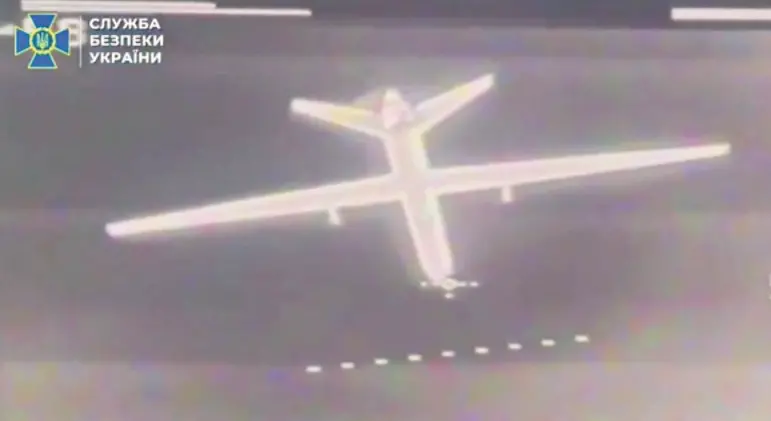乌克兰安全局发布的据称是乌军拦截型FPV最后撞击前拍摄的俄军“猎户座”无人机的影像。