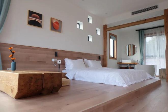 除了顏值出眾的餐飲與休閒設施,鄉村馬龍的住宿區域也拾分亮眼。民宿壹期設有6間客房,均采用原木風格裝修,搭配溫暖色系與極簡現代化智能家居,推窗就是滿目綠意,蟬鳴鳥叫相伴,真正實現“屋中看景,賞心悅目;景中看屋,悠然自得”的愜意體驗。