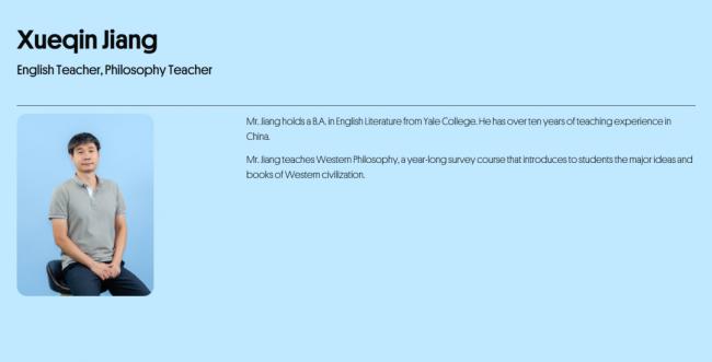 1999年,他从耶鲁大学毕业。探月学院目前公开的教师介绍页也写得很清楚:Yale College英语文学学士,现在教授Western Philosophy。