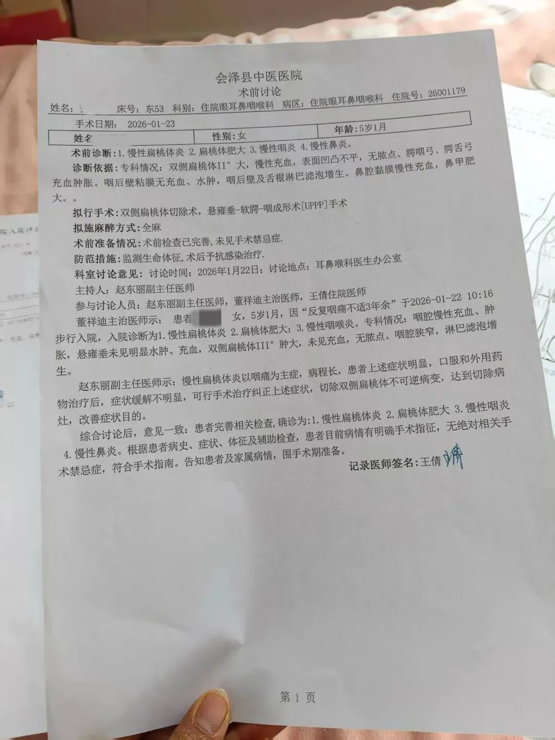 会泽县中医医院针对姚青女儿的术前讨论记录。图/受访者提供